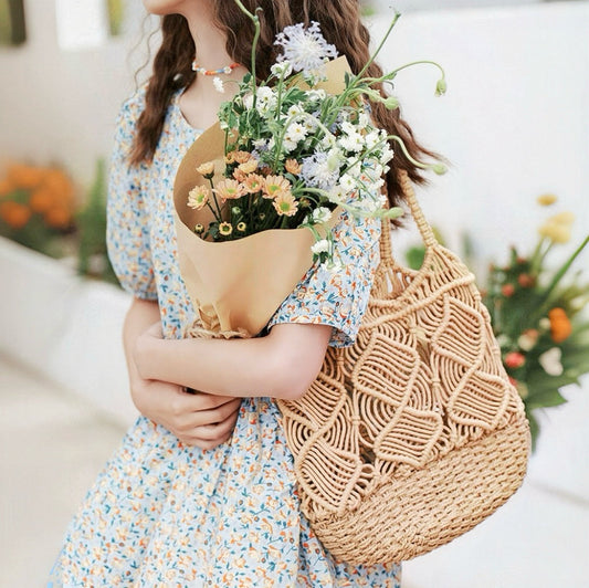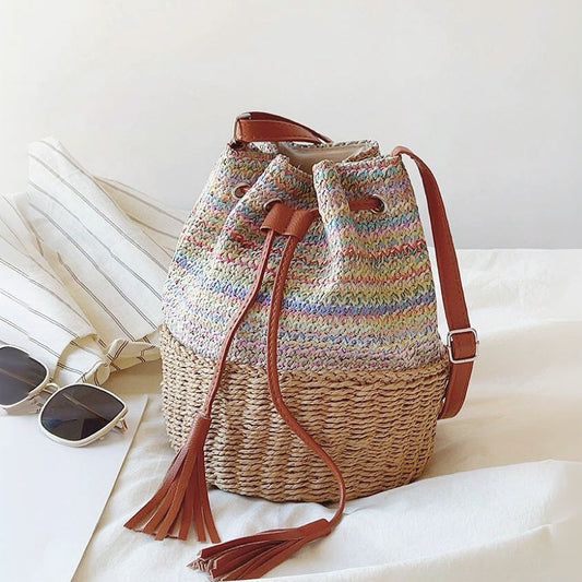 Bohemian Woven Straw Bucket Bag